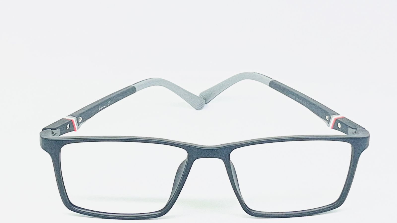 Rectangular Black Eyeglasses with Red & White Accents