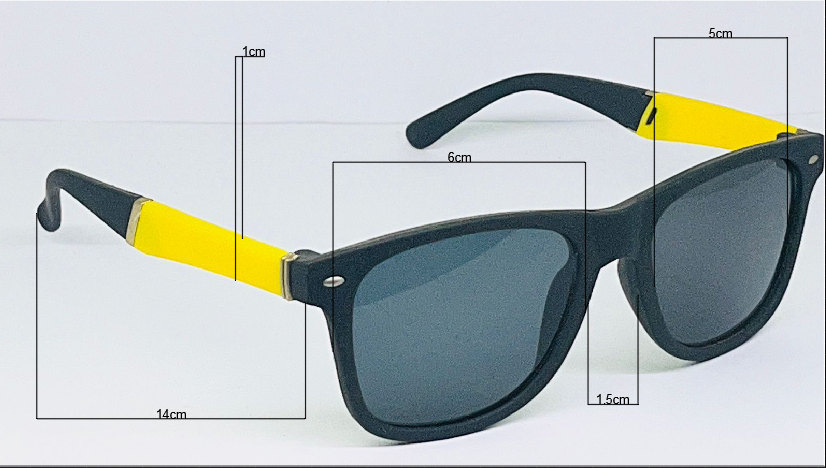- Color Accents: Yellow detailing—1 cm on the left temple, 5 cm on the right temple