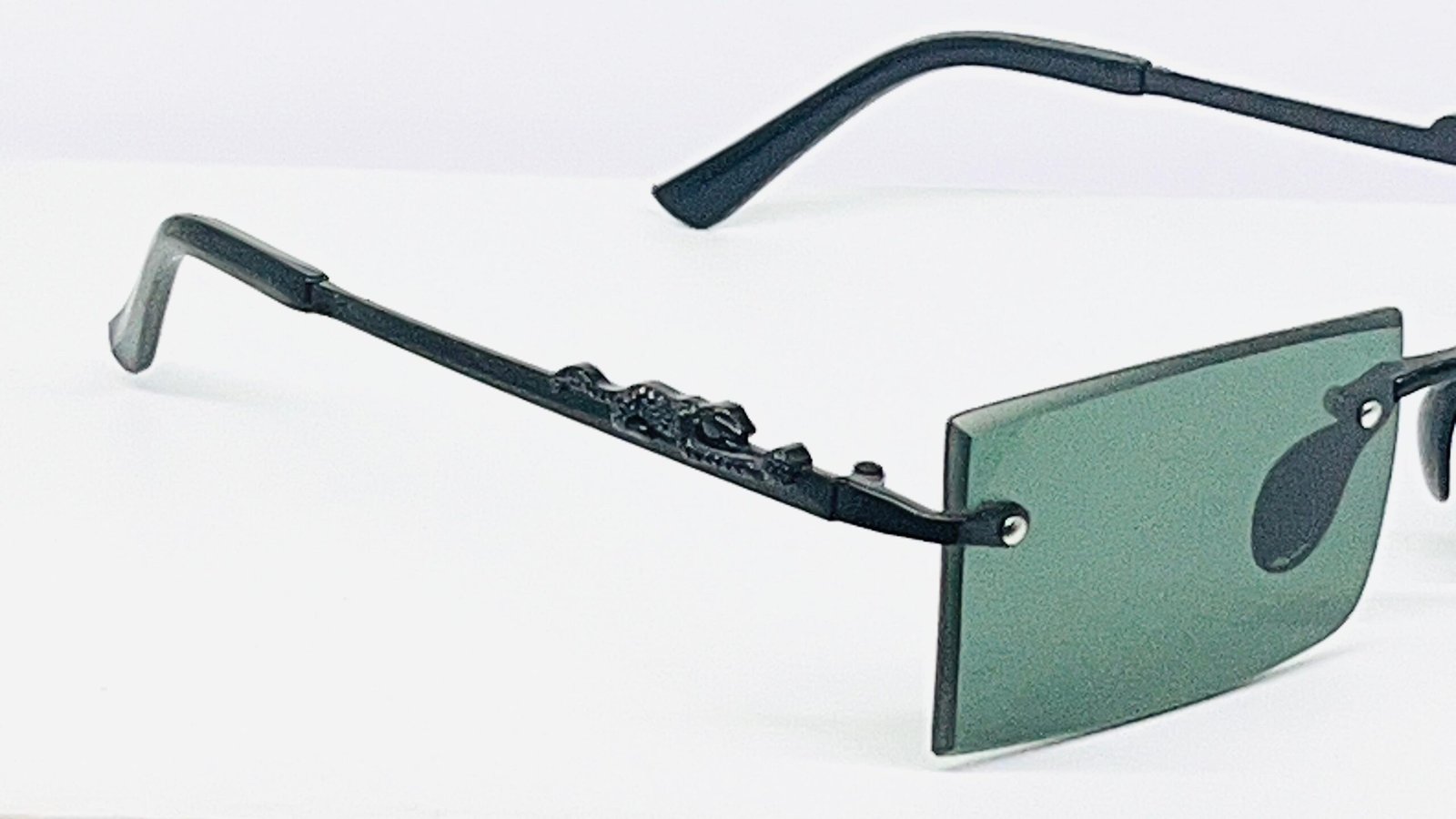 Upgrade your style with these sleek, modern rimless sunglasses designed for a bold and confident look. Featuring rectangular green-tinted lenses, these sunglasses offer excellent sun protection while enhancing visual comfort in bright light. The lightweight rimless design ensures all-day comfort, while the sturdy metal bridge and side fittings provide durability and a premium finish.